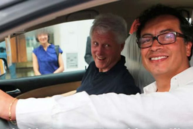 Photo: Petro as Clinton’s chauffeur in Colombia 2013. |