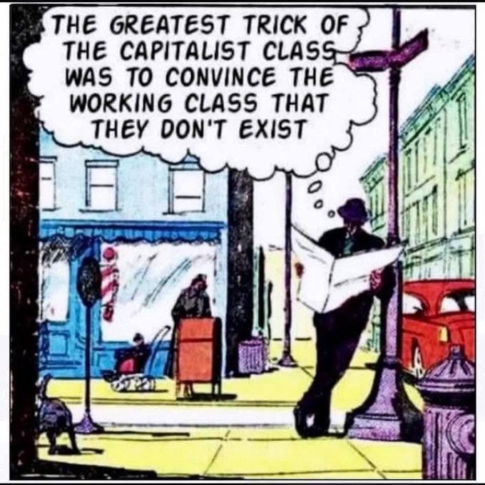 Another such commentator headlines his article as The Political Marginalization of Ordinary People. He half apologises for the term ordinary people as he uses it as a stand in for another term. No, not the working-class. This snob says that he is “using “ordinary workers” and “ordinary people” in lieu of the off-putting “less-skilled workers” and “less-educated voters.””[3] Though he does talk about class at times, but more in the sense of how we have moved away from class conflict, but it is nice to know that he uses this term instead of other terms we might readily identify as the insults they are: polite middle-class speak for useless and stupid. It brings to mind that horrible expression from social climbers, of which the Left is plagued with who say things like I am economically working class (the mortgage adviser set them right on that one) but I am culturally middle-class, i.e. they have a degree, like reading and watch art-house cinema, particularly films that depict the lives of the working-class. In fairness to him, his Think Tank the Niskanen Center actively argues for a capitalist welfare state, he doesn’t claim to be a socialist. The non-existence of the working-class is an age-old refrain. “Each decade we shiftily declare we have buried class; each decade the coffin stays empty.”[4] Though they only declare they have buried the working-class, the middle-class and upper-class are never declared to be dead. You have to be alive to cash in your ill-gotten gains.