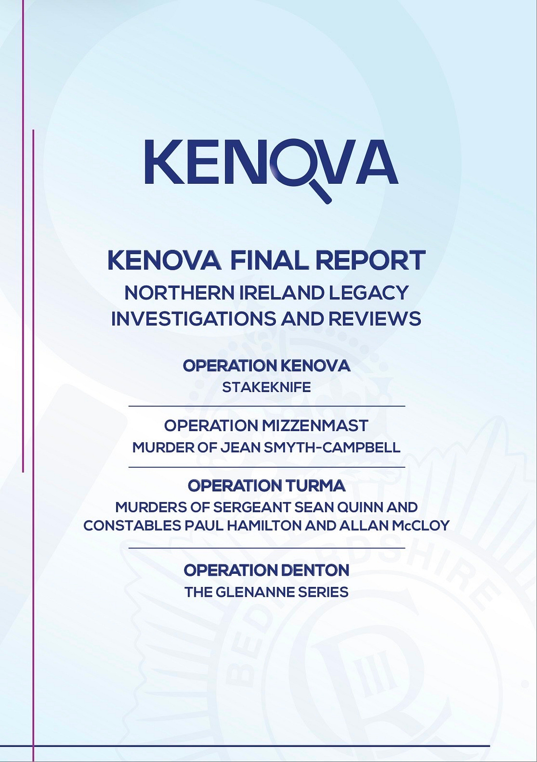 In the publication of the final Kenova report the following lines of inquiry were investigated by the team with respect to the Bingham case: