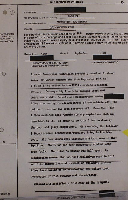 The white Renault used in the murder had been found a short time later in Jamaica Court in Ardoyne.